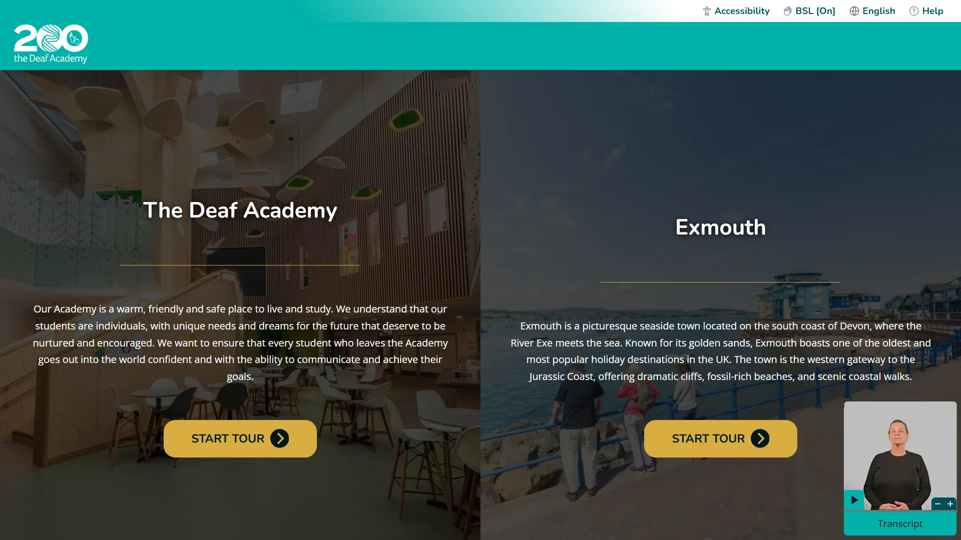 We pioneered this first-of-its-kind accessibility project to help Deaf and disabled people navigate the Deaf Academy and Exmouth with confidence. In collaboration with the Deaf academy and National Centre for Accessible Transport (NCAT), we combined a town-wide, immersive 360° virtual tour with British Sign Language (BSL) support, interactive mapping, and more.